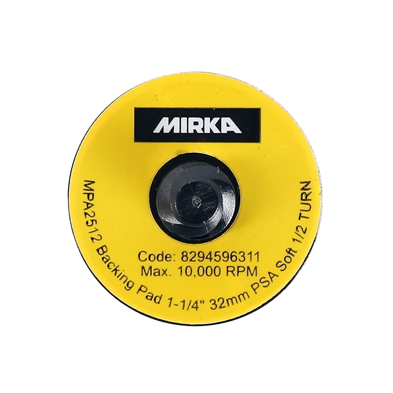 This soft backing pad features a quick-lock mechanism and is compatible with Mirka AOS Electric tools.